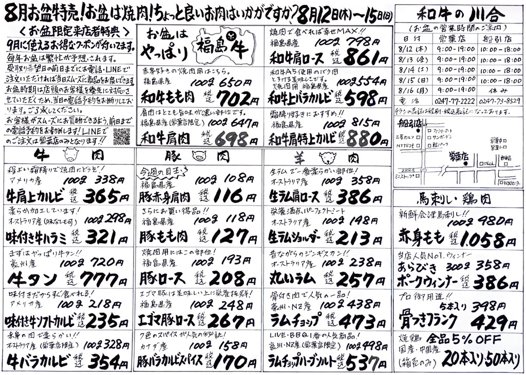 8月お盆特売!お盆は焼肉!ちょっと良いお肉はいかがですか?