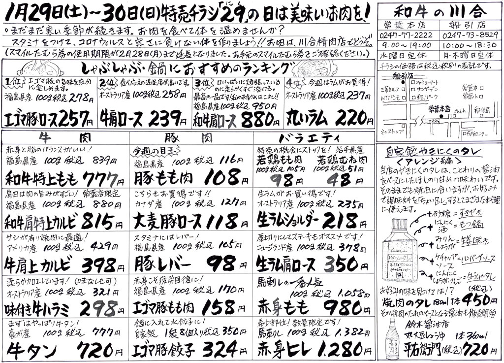 「29(にく)」の日は美味しいお肉を!まだまだ寒い日が続きます。