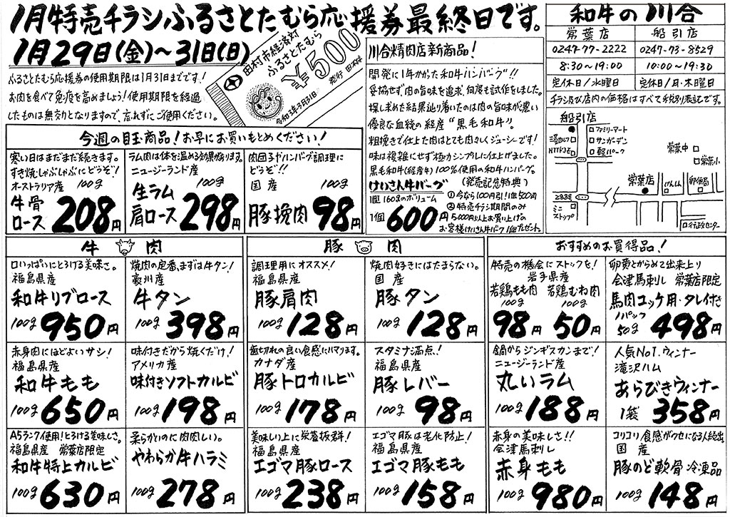 2月より、船引店が一時休業となります。 営業形態をリニューアルし、より色々な形でお肉を提供できれば